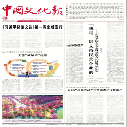 《中国文化报》创刊于1986年,是中华人民共和国文化和旅游部主管的权威性文化综合类日报。国内统一刊号:CN11-0089。 《中国文化报》以继承、弘扬中华民族文化传统,繁荣、发展文化事业和文化产业,促进中外文化交流为宗旨,权威发布国家文化政策,快速报道全球文化动态,大力推介优秀文化作品,理性评说社会文化热点,客观反映和科学探究文化领域的管理之策、经营之道和消费之势,是文化管理者适读、文化经营者适读、文化消费者适读的报纸。 《中国文化报》每日出刊,国内外公开发行,每周平均56个版。报纸全国印点已达到8个,投递时效性更强,多个地区实现“日报日到”。 《中国文化报》立足行业,面向社会,突出文化艺术领域焦点新闻的深度和广度报道。《中国文化报》注重指导性、服务性和可读性,遵循“立足市场,面向世界,探索未来”的办报方针,坚持“理性、建设性”办报理念。有选择的信息;独到视角的专栏;富有冲击力的图片和制作讲究的整体设计。 《中国文化报》以科学理性的精神采编新闻,以简洁明快的形式表现新闻;着眼中国文化行业,聚焦中国文化事业和文化产业发展,揭示全球经济环境下中国文化行业发展规律和走势,及时准确地报道国内外文化事业和文化产业的热点新闻和重要信息。 《中国文化报》的新闻报道具有鲜明特色。创办20多年来,始终坚持紧紧围绕党和国家经济、文化的方针、政策,围绕文化事业的兴起和文化产业的产生、发展、繁荣展开积极而富有成效的报道,形成了全、准、快、深、稳健求实的办报风格。《中国文化报》为日报,对开四版至八版,国内外公开发行,全国各地邮局均可订阅。 1版:要闻 2版:综合新闻 3版:理论 4版:人物 5版:高原高峰 6版:公共服务 7版:高质量发展 8版:品鉴 |