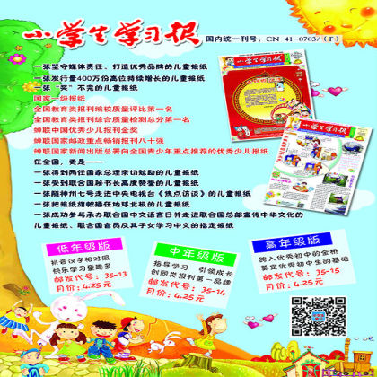 《小学生阅读报》创刊于1985年,是经国家新闻出版总署正式批准出版、由吉林省教育学院主管主办,面向全国发行的少儿报纸。国内统一刊号:CN22-0019。曾荣获全国首届少年儿童报刊栏目一等奖、全国学习辅导类报纸编校质量评比优秀奖。 《小学生阅读报》以丰富的知识为主体,以教会小学生真正能读会写、提高综合素质为目标,以小学生阅读报延伸阅读、拓展训练为手段,以生动有趣、灵活多变为风格特色,打造学生阅读类报刊中的名牌,为全国小学语文教师提供最新教学理论的实践平台,为小学生提供最喜欢的最期待的文本。 《小学生阅读报》为周报,分低、中、高三个版本,均为四开四版,全彩印刷。 版面设置 第一版以引导小学生健康快乐成长为主要内容,刊载精品美文(赏析)、学生身边的事件等。目的是培养小学生良好的意志品质和学习、生活习惯及人文情怀,引领学生关注生活、关注社会。 第二版结合《语文课程标准》,帮助小学生进行语言文字、生活素材、思维方式及阅读方法的积累,帮助小学生提高阅读文字、阅读图片和阅读生活的水平及能力。 第三版结合《语文课程标准》对各年段学生习作的具体要求,刊发习作指导及小学生的优秀习作,并引导小学生进行有效训练,从而帮助他们提高习作水平,配合小学语文习作教学。 第四版向小学生推介他们感兴趣的科学文化知识,开阔小学生的视野,增长小学生的见识。 |